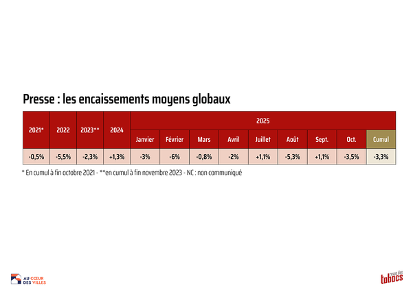 Pour Jean-Michel Detchart, président de Culture Presse : « paradoxalement, lorsqu’on intègre l’ensemble des produits, l’encaissement cumulé depuis le 1er janvier 2025 reste positif à +2,5 %. Preuve que le point de vente diversifié résiste bien et progresse même ! Nous entrons dans les deux derniers mois de l’année avec une double certitude : la tendance structurelle reste baissière, mais elle n’est pas dramatique. Le marché presse continue de muter, de se recomposer, de chercher ses dynamiques. À nous d’accompagner ce mouvement, de l’observer avec attention … et de penser l’avenir en restant lucides mais non résignés. »