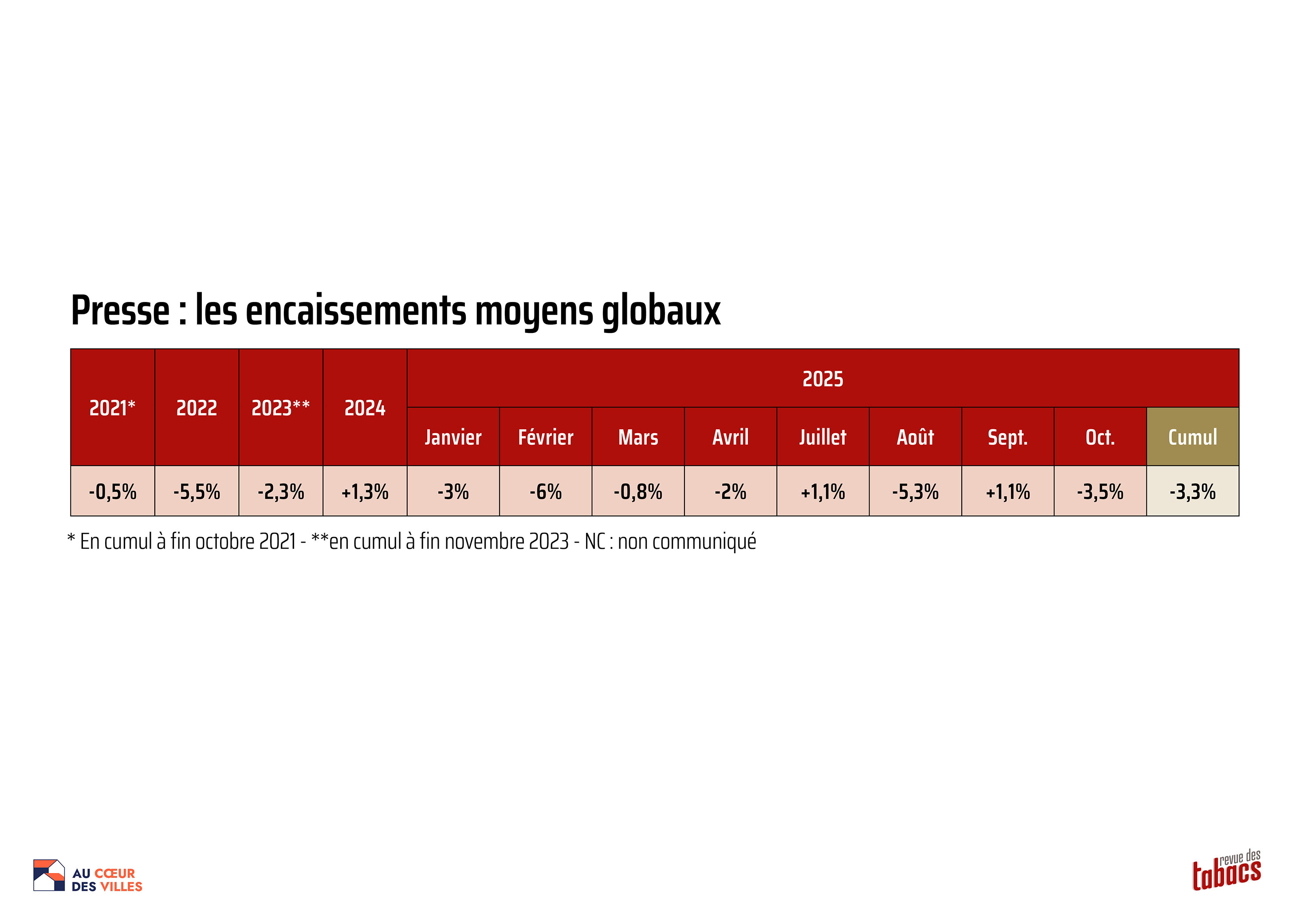 17 novembre 2025. L’Observatoire Devlyx-Culture Presse a annoncé des encaissements presse moyen – tous produits confondus chez les marchands indépendants – en baisse de -3,5% en octobre 2025 et -3,3% en cumul depuis janvier 2025.